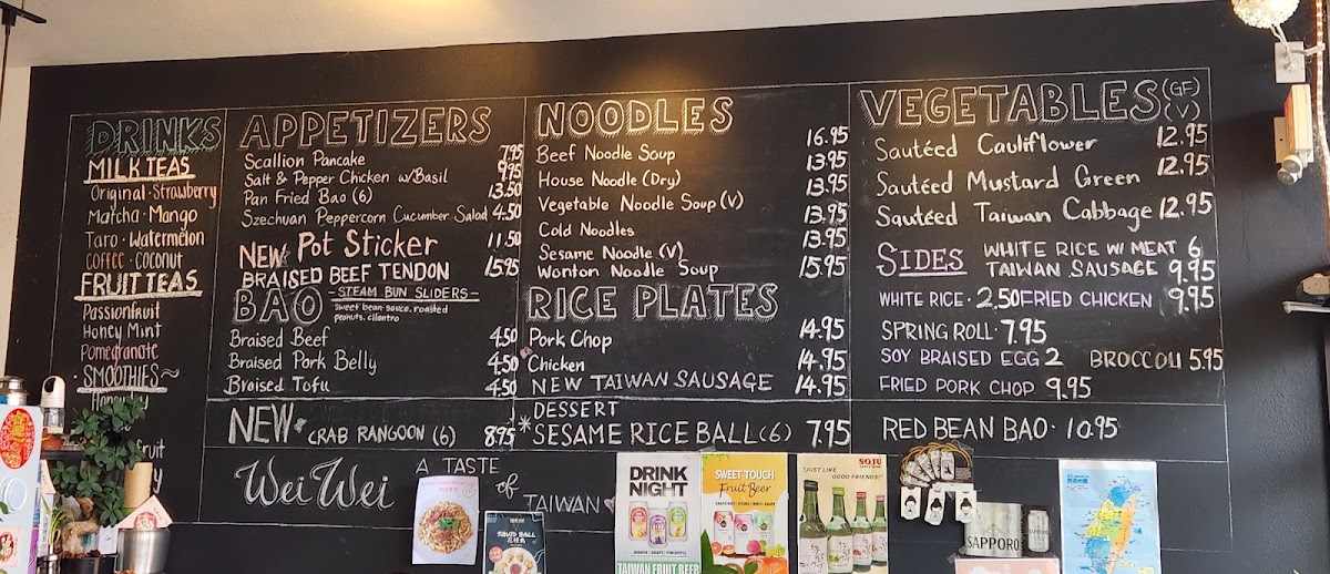 Wei Wei - A Taste Of Taiwan, where we invite you to embark on a delicious culinary journey through the heart of Taiwanese cuisine. Nestled at 7835 SE 13th Ave #102, Portland, OR 97202, our menu is a vibrant tapestry of flavors and textures that are sure to tantalize your taste buds. From our mouthwatering Braised Pork Belly Bao to the comforting Taiwanese Style Beef Noodle Soup, each dish is crafted with authenticity and passion. Don't miss out on the delightfully crispy Salt & Pepper Chicken with Basil or the savory Pork Chop Rice Plate, perfect for those seeking a hearty meal. And for a sweet finish, our famous Bubble Tea is a must-try! With so many delectable choices, including Pan Fried Bao and Spicy Noodles, there's something for everyone at Wei Wei. Come indulge in our specialties and experience the taste of Taiwan like never before!